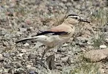 黑尾地鸦:体羽沙褐色,额、头顶以至后颈呈发金属紫蓝辉的黑色。头侧乳黄色。整个背面,包括两肩葡萄褐色。翅的中、小覆羽与背同色,最外侧的小翼羽白色;大覆羽呈发紫蓝色光辉的黑色;初级飞羽白色,…全部>>