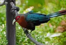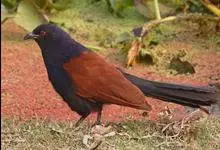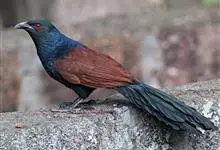 褐翅鸦鹃,是鹃形目鸦鹃科鸦鹃属的鸟类。褐翅鸦鹃的身体为黑色;头颈和胸带蓝紫色金属光泽并具黑亮的羽干纹,下胸至腹部泛金属绿光泽;两翼和肩部为棕栗色,外侧飞羽具暗色羽端,尾羽闪铜绿色光泽;虹膜赤红色,…全部>>