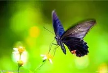 蓝凤蝶,Papilio protenor Cramer,凤蝶科凤蝶属的一种昆虫。翅展95~120mm。翅黑色,有靛蓝色天鹅绒光泽。雄蝶后翅正面前缘有黄白色斑纹,…全部>>