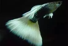 孔雀鱼,是鳉形目花鳉科花鳉属鱼类。孔雀鱼体形修长,其形态变化主要在尾鳍,常见的尾鳍形态有圆尾、尖尾、铲尾等。雌、雄鱼差别明显,雄鱼的大小只有雌鱼的一半左右,雄鱼体色丰富多彩,尾部形状千姿百态。…全部>>