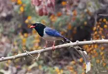 红嘴蓝鹊,别名山鹊、长尾鹊,是鸦科蓝鹊属的一种观赏性较强的大型鸣禽。该物种为体长54~65cm,头、颈、喉和胸黑色,头顶至后颈有一块白色至淡蓝白色或紫灰色块斑,其余上体紫蓝灰色或淡蓝灰褐色。尾长呈凸状,…全部>>