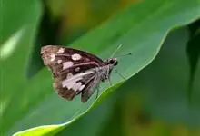 姜弄蝶 Udaspes folus ,又叫银斑姜蝶。幼虫吐丝粘叶成苞,隐藏其中取食,受害叶呈缺刻或在1/3处断落,…全部>>