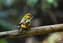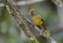 斑喉希鹛小型鸟类,体长14~17厘米。头具羽冠,前额和头顶羽冠金黄褐色,头侧灰黄色具黄色眼圈。上体灰橄榄绿色,外侧飞羽表面橘黄色、基部具黑色翼斑;内侧飞羽表面淡灰色具黑色亚端斑和白色端斑。尾羽黑色,…全部>>