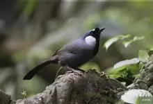 黑喉噪鹛是噪鹛属鸟类。体长24-29厘米,体重75-90克。雄鸟前额、眼先、眼周和眼后纹以及颊、须和喉黑色;黑色前额和蓝灰色头顶之间有道白色细斑;颈侧具椭圆形白斑,…全部>>