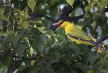 黑枕黄鹂又称黄莺、黄鹂、金衣公子等,是雀形目黄鹂科黄鹂属鸣禽。体长23~27厘米,嘴略下弯,粉色;雄鸟整体主要呈鲜明的黄色,黑色过眼纹在额和枕后相连,且在枕后较粗,形成一围绕头顶的黑色宽带;飞羽黑色,…全部>>