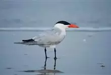 北极燕鸥是属于燕鸥属的一种海鸟。体型中等,体长33-39厘米,翼展76-85厘米。其羽毛主要呈灰色与白色,喙和两脚呈红色,前额呈白色,头顶和颈背呈黑色,腮帮子呈白色。其灰色翅膀为305毫米,肩羽带棕…全部>>