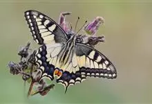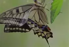 金凤蝶,是鳞翅目凤蝶科凤蝶属动物。金凤蝶为中型凤蝶,翅展70-84毫米,翅背面底色黑褐色,翅脉黑色,翅室具黄斑;前翅背面基部呈暗黄色,亚外缘为黑色,内具一列小黄斑;后翅背面亚外缘区具黑宽边,…全部>>