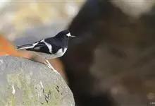 黑喉石鵖,雀形目鹟科石鵖属小型鸣禽,俗名谷尾鸟、黑喉石。其体色为黑褐色。雄鸟头部、背部、两翼及尾黑色,颈侧及翼上具白斑,胸部和腹侧红棕色,腰及尾下覆羽白色。雌鸟体色为褐色,上体具深色纵纹,胸部染棕色,…全部>>
