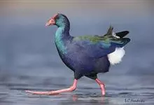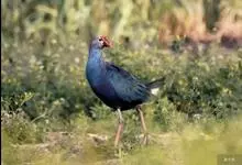 紫水鸡是秧鸡科紫水鸡属鸟类。下辖12个亚种,中国为云南亚种。体长40-45厘米,体羽大多为紫蓝色,翅表面和胸蓝绿色;尾下覆羽白色;嘴红色,粗大并与橙红色额甲相接;额甲宽阔,后缘呈截平状;雌雄鸟相似,…全部>>