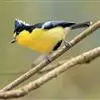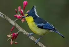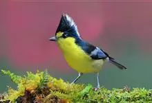 台湾黄山雀体长约13厘米。头顶至后颈黑色,有一长的黑色羽冠,羽冠末端和后颈中央白色。背苍绿色,两翅和尾黑色,羽缘蓝灰色,外侧尾羽白色。额基和下体鲜黄色,尾下覆羽白色,雄鸟腹部有一黑斑。…全部>>