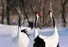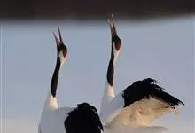 丹顶鹤:是鹤科、鹤属的一种大型涉禽,体长120-160厘米。颈、脚较长,通体大多白色,头顶鲜红色,喉和颈黑色,耳至头枕白色,脚黑色,站立时颈、尾部飞羽和脚黑色,头顶红色,…全部>>