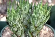 条纹十二卷 Haw.)是芦荟科十二卷属植物,为多年生肉质草本植物。植株高度10-15厘米,其呈莲座状生长;叶片紧密轮生在茎轴上,柔软多汁,呈长三角状披针形,极肥厚;叶面光滑、扁平,色深绿;叶背突起,…全部>>