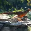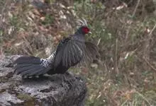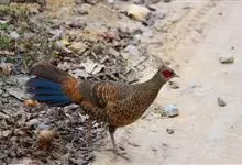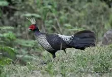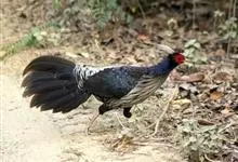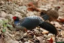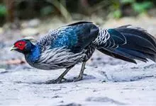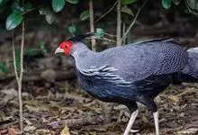 黑鹇是鸡形目雉科目鹇属鸟类,又称鸬雉、黑鸡。体型中等。雄鸟上体黑褐色,背羽具黑紫色金属光泽;头顶具黑羽冠;脸部裸皮呈红色,散生稀疏黑色纤羽;尾长而侧扁,中央两对尾羽红褐色,…全部>>