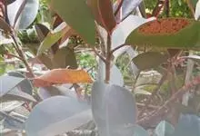 印度榕,别名橡皮树,桑科榕属多年生常绿乔木植物。株高30米;树皮灰白色,平滑;叶厚革质,长圆形或椭圆形,叶柄粗,托叶膜质,深红色;榕果成对生于落叶枝叶腋,卵状长椭圆形,…全部>>