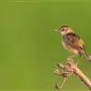 强脚树莺是雀形目树莺科树莺属鸟类,又称山树莺。成鸟额至头顶红棕色,长眉纹淡皮黄色,贯眼纹黑褐色,头侧余部淡黄白色;后颈、肩、背及翼上覆羽等部分橄榄褐色,腰和尾上覆羽浅棕褐色;尾羽暗褐色,…全部>>