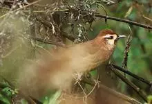 白颊噪鹛是雀形目噪鹛科噪鹛属鸟类,又称土画眉、小画眉、小噪鹃。成鸟额至头顶栗褐色,长眉纹、眼先和颊纹棕白色,眼后至耳羽深褐色,…全部>>