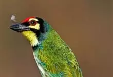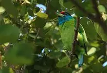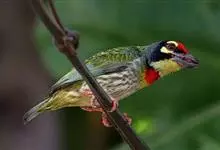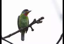 金喉拟啄木鸟,是须鴷科、拟啄木鸟属的鸟类。金喉拟啄木鸟为小型鸟类,体长19-24厘米。额深红色,头顶金黄色,后枕具一大块深红色斑,耳羽和头侧银灰色,上体草绿色,颏和上喉金黄色,下喉淡银灰色,…全部>>