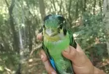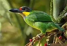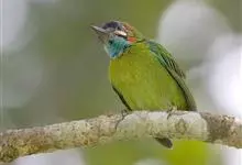 绿拟啄木鸟为鴷形目,须科,拟啄木属的一种。形较大拟啄木鸟略小,体长约260mm。头、颈及胸浅褐而具淡黄白色条纹;喉几为淡黄白色;身体余部草绿色。虹膜棕褐色,眼周裸露部黄色;嘴峰角黄色;跗跖和趾角黄…全部>>