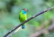 黑眉拟啄木鸟,为须䴕科、拟啄木鸟属的小型鸟类,体长20-25厘米,外形和金喉拟啄木鸟非常相似,但具粗著的黑色眉纹,头侧和耳覆羽以及下喉蓝色而不为银灰色,前颈两侧各有一块鲜红色斑。全部>>