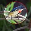 红胸啄花鸟:体重5-10克,体长60-92毫米。体形纤小。雄鸟上体呈辉亮的金属绿色;下体棕黄,胸部具一朱红色块斑,极易与其他啄花鸟区别。雌鸟上体呈橄榄绿,下体棕黄色。虹膜褐色,嘴褐黑色或角灰色,…全部>>