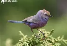 花彩雀莺:体长9-12厘米,是一种毛茸茸偏紫色的雀莺。顶冠棕色,眉纹白。尾长,羽毛松软。前额有一宽阔的眉纹淡黄色,头顶栗色或棕红色,有的具紫蓝色光泽。背灰色,腰和尾上覆羽辉紫蓝色,飞羽灰褐色。…全部>>