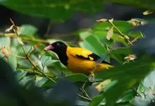 黑枕黄鹂又称黄莺、黄鹂、金衣公子等,是雀形目黄鹂科黄鹂属鸣禽。体长23~27厘米,嘴略下弯,粉色;雄鸟整体主要呈鲜明的黄色,黑色过眼纹在额和枕后相连,且在枕后较粗,形成一围绕头顶的黑色宽带;飞羽黑色,…全部>>