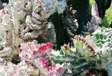彩春峰是大戟科大戟属肉质植物,彩春峰的肉质茎依品种的不同有暗红色、乳白、淡黄及镶边、斑纹等复色。彩春峰的性状很不稳定,栽培中经常会发生色彩的变异,如暗紫红色肉质茎会长出白色黄色斑块等。…全部>>