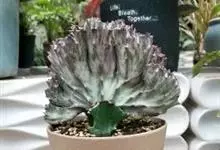 白桦麒麟又名玉鳞凤锦,为玉麟凤的斑锦品种,多年生肉质草木。其生活习性属于南非地中海式气候。白桦麒麟是白色斑锦六角形瘤块,表皮白色,周围的沟状纹绿色,色彩很明快。是一个观赏性很强的品种。适合家庭盆栽欣…全部>>