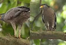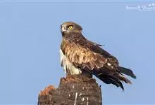 短趾雕:体长62-70厘米,体重1.2-2.3千克。它们的颔、颈和胸部上方呈浅棕色。头部浑圆像猫头鹰般,眼睛呈鲜黄色。身体沉重,上体灰褐,下体白而具深色纵纹,喉及胸单一褐色,腹部具不明显的横斑,…全部>>