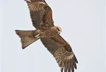 黑鸢:是鹰科、鸢属的一种中型猛禽,共有5个亚种。体长54-69厘米。上体暗褐色,下体棕褐色,均具黑褐色羽干纹,尾较长,呈叉状,具宽度相等的黑色和褐色相间排列的横斑;飞翔时翼下左右各有一块大的白斑。…全部>>
