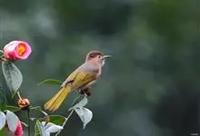 灰短脚鹎,体长19-22厘米。头顶和短的羽冠黑色,上体暗灰色,耳羽灰褐色,两翅表面橄榄绿黄色。大覆羽和内侧飞羽外翈橄榄黄色,在翅上形成大块绿黄色斑,在灰色的上体极为醒目。尾暗褐色具橄榄绿色羽缘。…全部>>