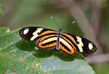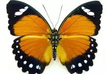 黑脉金斑蝶:翅阔8.6-12.4厘米。雄蝶较雌蝶为大。成年蝶颜色鲜艳,翅膀上有显眼的橙色及黑色斑纹,周围是宽阔的黑色边框,布有许多白色斑点。这种引人注目的着色是对捕食者的视觉警告,表示这个物种有毒;…全部>>