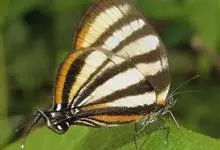 虎斑蝶,Danaus genutia ,是斑蝶属的一种,常见于湿地公园内。雄性虎斑蝶经常伏于吊裙草 上吸食汁液,以制造吸引异性的香气。虎斑蝶翅膀腹面鲜橙色,翅脉和翅边缘黑色,边缘上有两行小白点,…全部>>