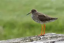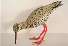 红脚鹬:体长28厘米,上体褐灰,下体白色,胸具褐色纵纹。飞行时腰部白色明显,次级飞羽具明显白色外缘。尾上具黑白色细斑。虹膜黑褐色,嘴长直而尖,基部橙红色,尖端黑褐色。脚较细长,亮橙红色,…全部>>