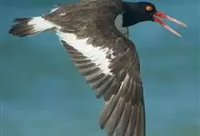 蛎鹬是鸻形目蛎鹬科蛎鹬属。蛎鹬的成鸟夏羽头、颈、胸和上体大部分为乌亮的黑色,腰到尾上覆羽白色,尾羽基部白色,端部黑色;翼上黑色,具有白横斑;下体胸部以下白色,翼下白色带黑缘;虹膜红色,啄和眼圈橘色,…全部>>