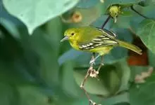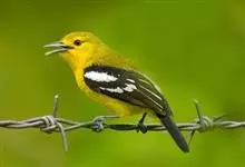 黑翅雀鹎:体重14-19克,体长11.5-16厘米。是树栖性绿色小鸟,外形与叶鹎相似,下体黄色。鸟喙直,翼长而尖,总体羽毛是绿色和黄色相结合,翼上具两道明显近白色横纹,翼近黑而羽缘白。…全部>>