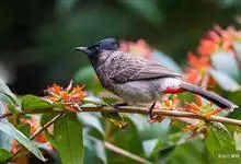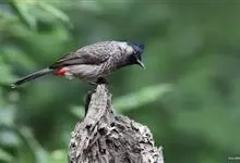 黑喉红臀鹎是雀形目鹎科鹎属鸟类,别称有黑头公、红臀鹎。头顶黑色具光泽;后颈、肩和背暗褐具灰色狭缘;腰羽几纯暗褐,尾上覆羽近白色,羽端浅灰褐色;尾羽褐黑,中央尾羽具狭窄的白色端斑,…全部>>