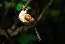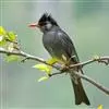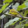 黑冠黄鹎:体长18-21厘米,是一种中等体型偏黄色鹎。整个头、颈、颏、喉黑色,头顶有显著直立的羽冠,黑色,上体褐橄榄黄绿色,下体橄榄黄色。虹膜偏红;嘴及脚黑色。…全部>>