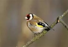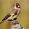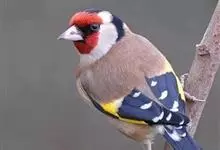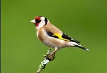 红额金翅雀:共有14个亚种。小型鸟类,体长12-14厘米。额、脸颊和颏朱红色,眼先和眼周黑色,在淡色的头部极为醒目。上体灰褐或乌褐色,尾上覆羽白色,两翅和尾黑色,翅上有黄色斑。下体喉、胸灰褐或乌褐色…全部>>