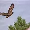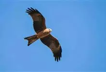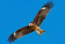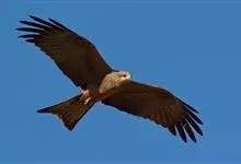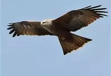 黑鸢:是鹰科、鸢属的一种中型猛禽,共有5个亚种。体长54-69厘米。上体暗褐色,下体棕褐色,均具黑褐色羽干纹,尾较长,呈叉状,具宽度相等的黑色和褐色相间排列的横斑;飞翔时翼下左右各有一块大的白斑。…全部>>