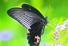 蓝凤蝶,Papilio protenor Cramer,凤蝶科凤蝶属的一种昆虫。翅展95~120mm。翅黑色,有靛蓝色天鹅绒光泽。雄蝶后翅正面前缘有黄白色斑纹,…全部>>