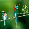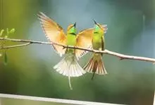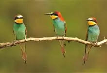 蓝颊蜂虎:是蜂虎科、蜂虎属的鸟类,共有2个亚种。体长27-33厘米,翼展46-49厘米,体重38-50克。嘴形细长而下弯,先端尖,…全部>>