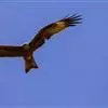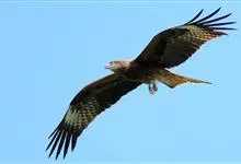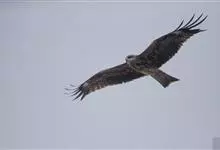 黑鸢:是鹰科、鸢属的一种中型猛禽,共有5个亚种。体长54-69厘米。上体暗褐色,下体棕褐色,均具黑褐色羽干纹,尾较长,呈叉状,具宽度相等的黑色和褐色相间排列的横斑;飞翔时翼下左右各有一块大的白斑。…全部>>