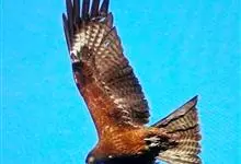 栗鸢:又叫红老鹰,为中型猛禽。体长36-51厘米。虹膜为褐色或红褐色,头、颈、胸和上背白色,其余体羽和翅膀均为栗色。主要栖息于江河、湖泊、水塘、沼泽、沿海海岸和邻近的城镇与村庄。…全部>>
