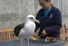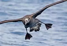 黑脚信天翁为鹱形目信天翁科下的一种大型海鸟, 单型种,无亚种分化。体长79-83厘米。嘴黑色,嘴基和眼下方灰白色,其余全身黑褐色。个别尾上覆羽和尾下覆羽白色,脚黑色,能与短尾信天翁区别。 全部>>