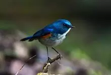 红胁蓝尾鸲俗名:蓝点冈子、蓝尾巴根子、蓝尾杰、蓝尾欧鸲。体型略小而喉白的鸲。特征为橘黄色两胁与白色腹部及臀成对比。雄鸟上体蓝色,眉纹白;亚成鸟及雌鸟褐色,尾蓝。…全部>>