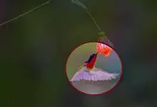叉尾太阳鸟,雀形目太阳鸟科太阳鸟属留鸟;为小型鸟类,雄鸟头顶辉蓝绿色,上体橄榄绿色,腰明黄色,中央尾羽亮翠蓝色,羽轴针状延长,外侧尾羽黑色具白色端斑,头侧黑色,颜、喉和胸为绛红色,…全部>>