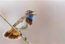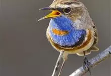 蓝点颏亦称“蓝喉歌鸲”,通称蓝靛颏儿。身体大小和麻雀相似,体长12-13厘米,体重17-18克。头部、上体主要为土褐色。眉纹白色。尾羽黑褐色,基部栗红色。颏部、喉部辉蓝色,下面有黑色横纹。下体白色。…全部>>
