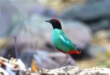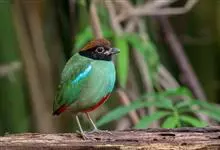 绿胸八色鸫:是雀形目八色鸫科的鸟类,共有12个亚种。体长为16-18厘米,体重65-69克。体型圆胖,尾短,腿长。头黑,上体绿色,两翼深色而具白色斑纹,头顶至后枕深褐,胸及腹部苹果绿,臀亮红。…全部>>