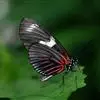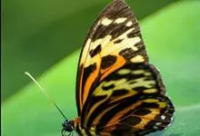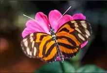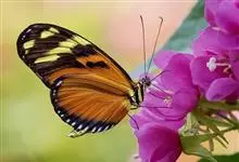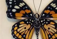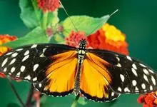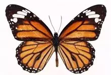 黑脉金斑蝶:翅阔8.6-12.4厘米。雄蝶较雌蝶为大。成年蝶颜色鲜艳,翅膀上有显眼的橙色及黑色斑纹,周围是宽阔的黑色边框,布有许多白色斑点。这种引人注目的着色是对捕食者的视觉警告,表示这个物种有毒;…全部>>